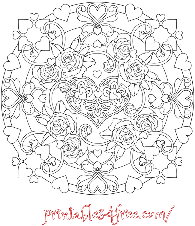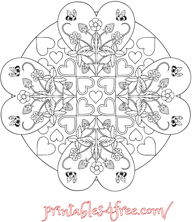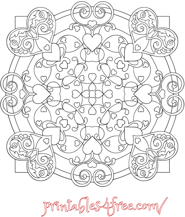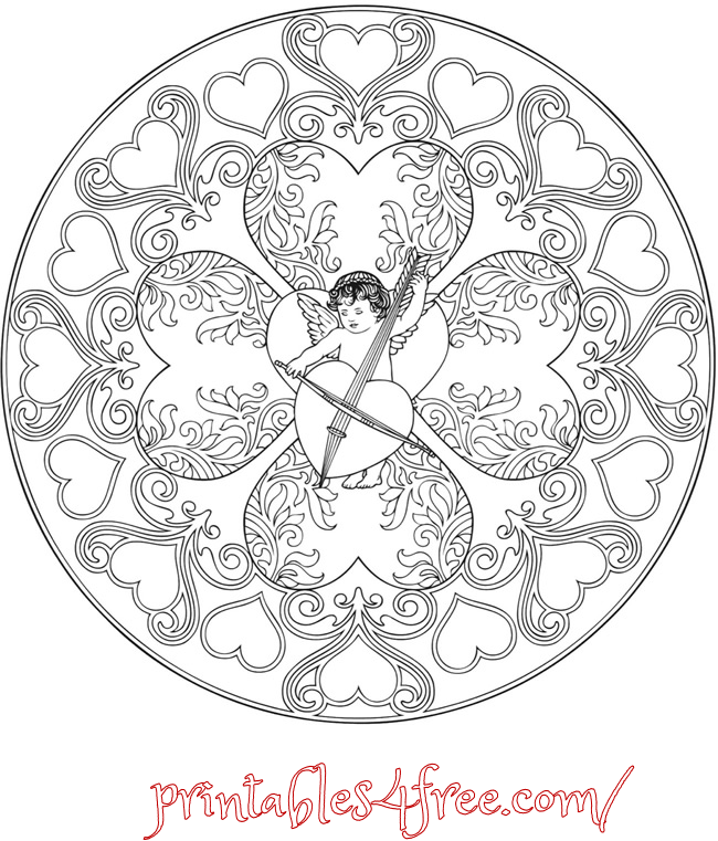 Mandala to color - free coloring page - Mandala with Cupid and Hearts