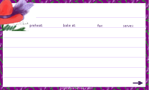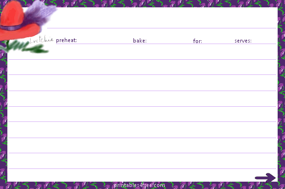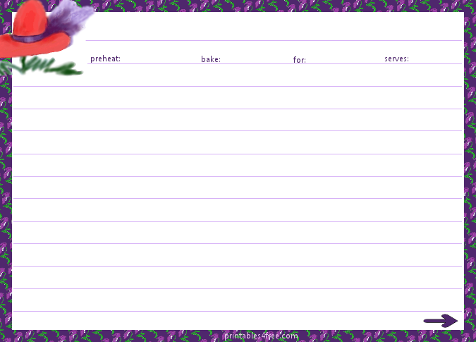 Lined Recipe Card Templates- Red hat Ladies - Printable